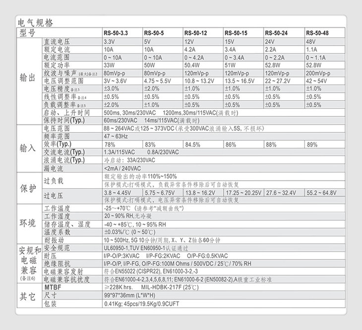 平均无故障时间 ≥22.8万小时,MIL-HDBK-217F(25℃)