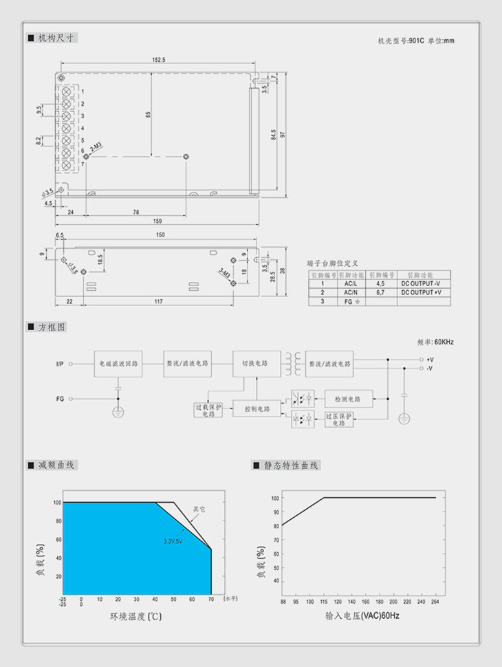 输入电压范围 88~264VAC/120~370VDC(承受5秒钟300VAC高压输入不损坏)