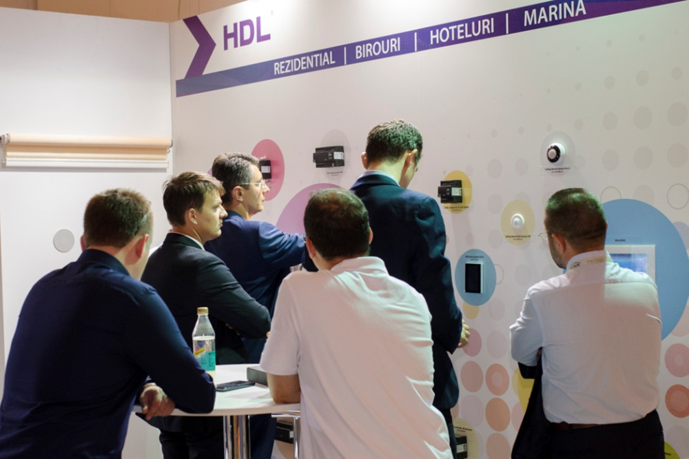 上个月,HDL低调出席在罗马尼亚首都布加勒斯特举行的第11届国际电气与自动化技术展览会(IEAS),向现场观众介绍了HDL的智能家居、智能酒店、智能建筑解决方案和系统产品,其中包括HDL智能家居应用软件、墙装智能控制面板、调光器、继电器、逻辑模块、传感器等等。这次展会由HDL罗马尼亚团队负责实施。展位的设计简约大方,不失优雅。所有的展品都安装在展位仅有的两面墙上,观众可以很方便地进入展位进行查看。加上HDL工作人员的专业讲解以及HDL产品的特点(或者说是优势),HDL展位吸引了大量的观众前往交流,展会进展顺利。