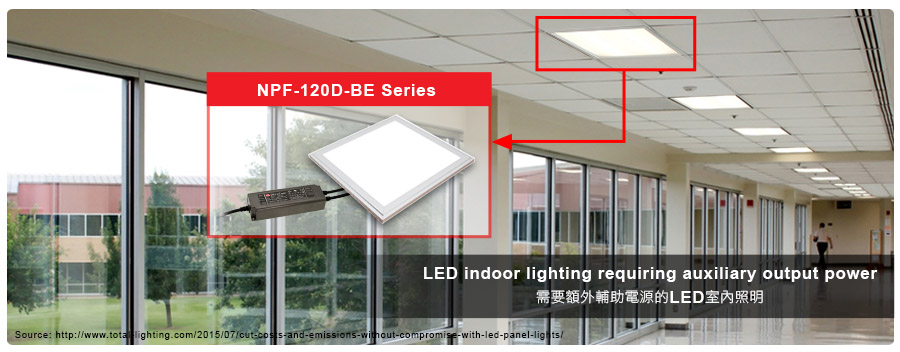 NPF-120D-BE 系列 (具辅助电源三合一调光型LED驱动器 (PFC)